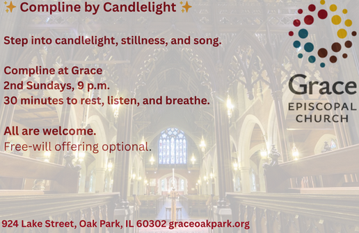 Grace Episcopal Church invites you to experience the ancient beauty of Compline, offered on the second Sunday of each month from 9:00–9:30 p.m.